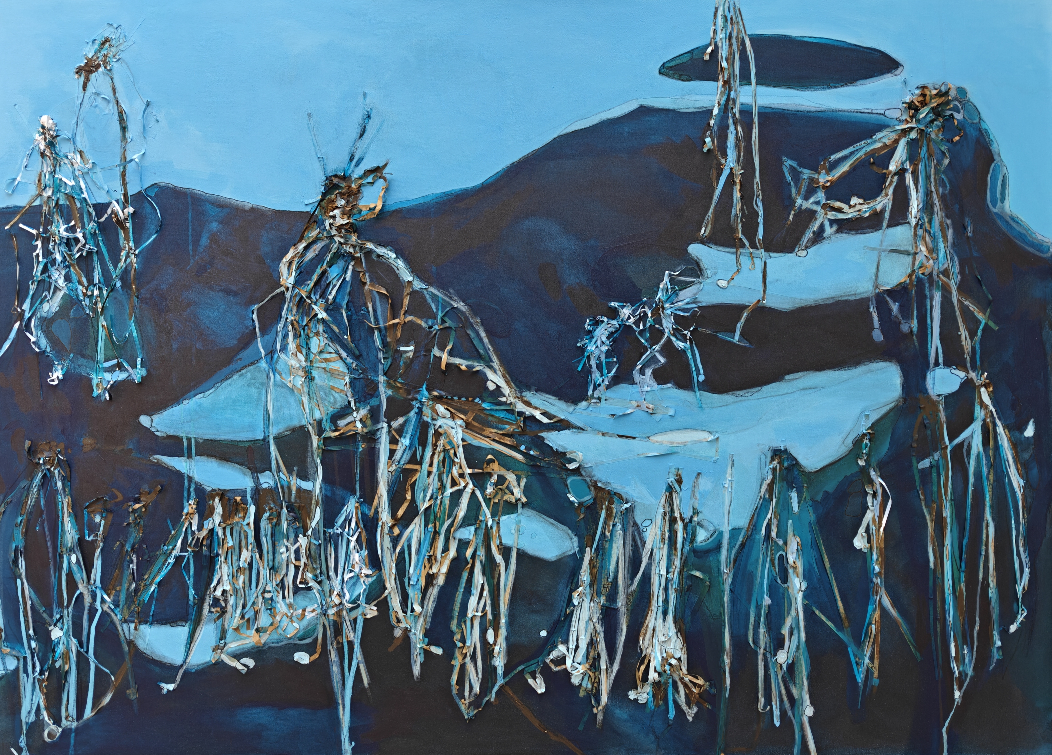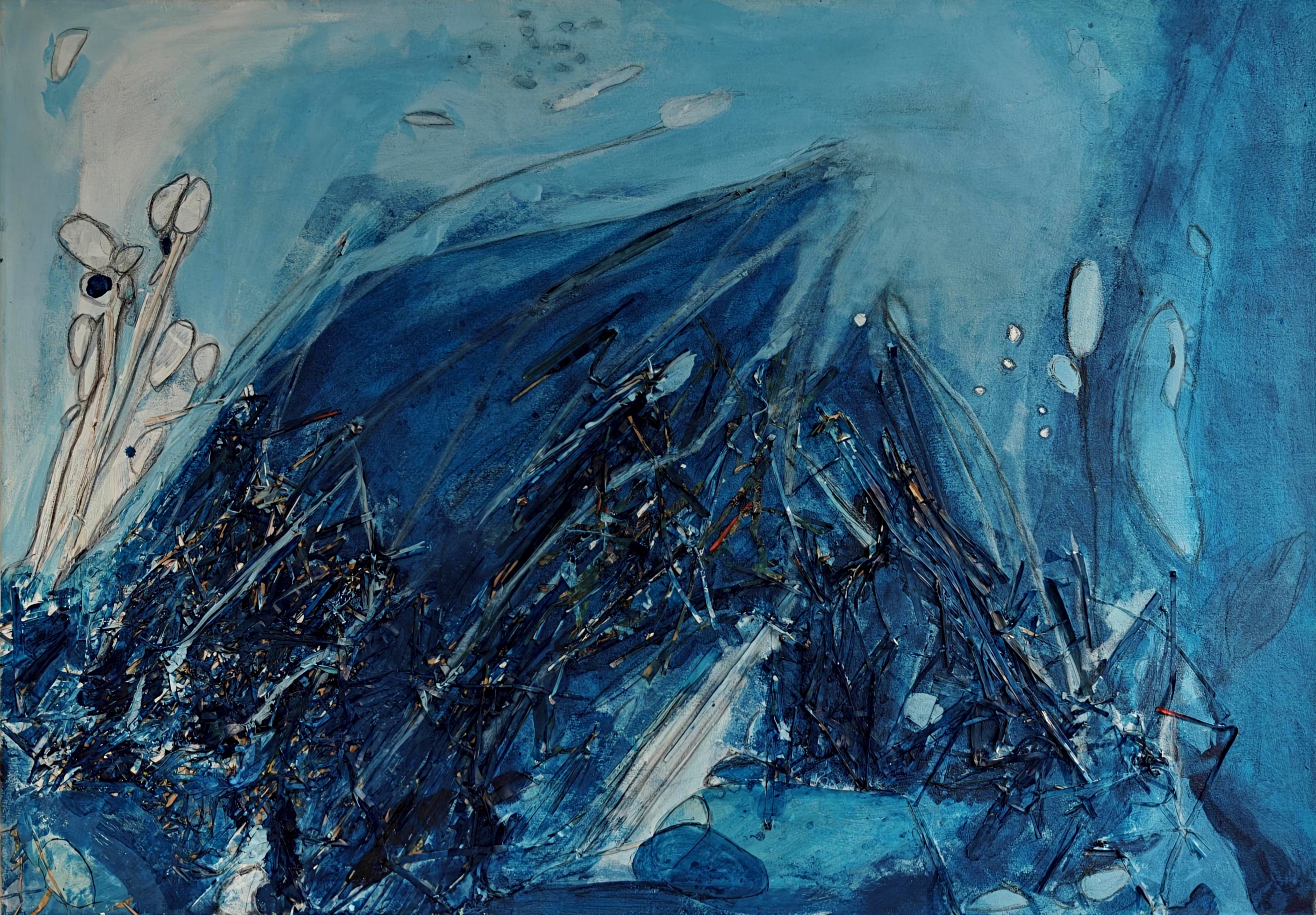 My large-scale paintings and installations are deeply personal, originating from my own experiences and memories. I translate these impressions exclusively through a reduced palette, working solely within the spectrum of blue. This monochromatic focus allows me to explore the infinite depth, mood, and light of my subject.