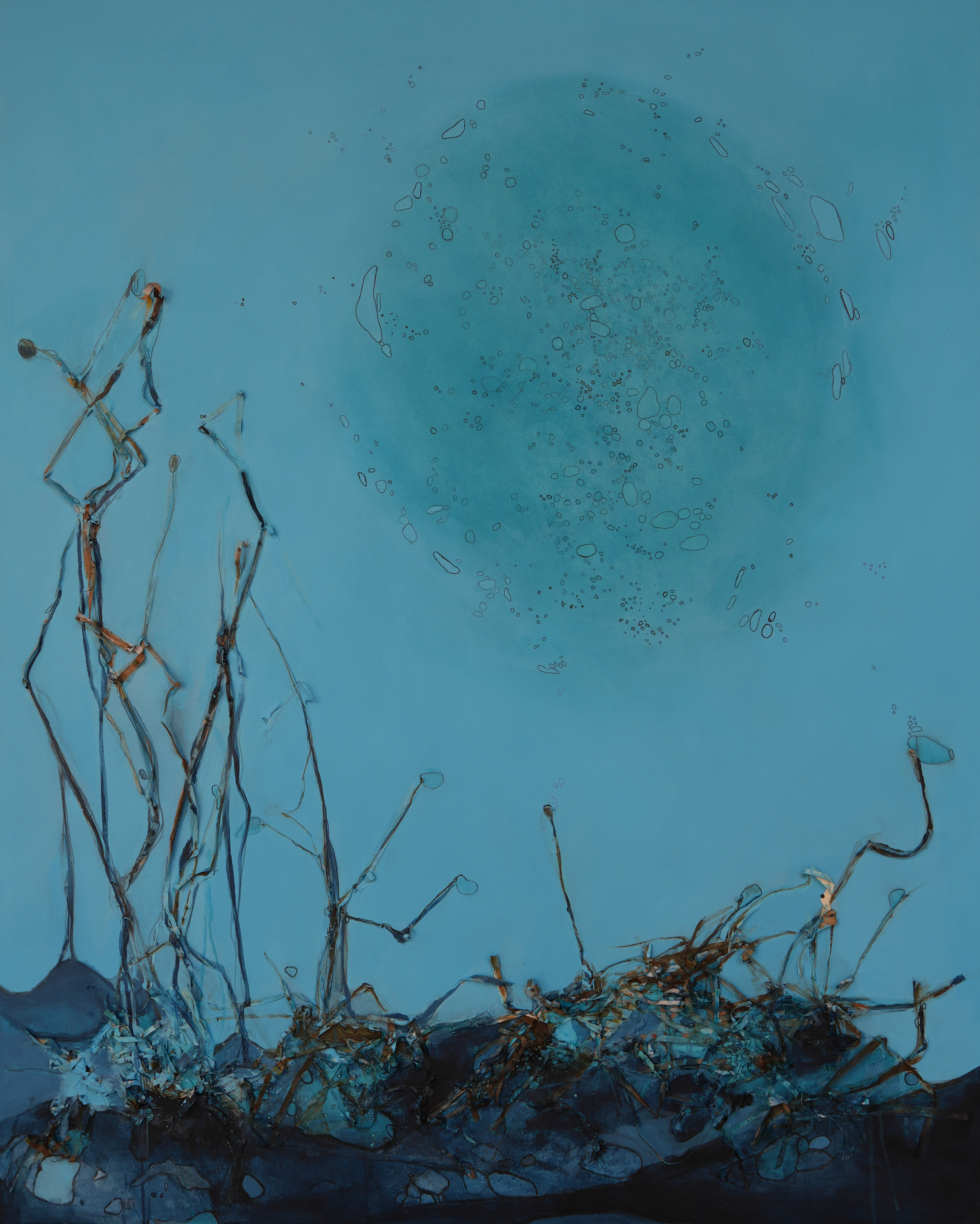 Through the intense, physical process of building up layers of oil, acrylic, and pencils, my goal is to render my feelings visible. I create immersive experiences that celebrate the fragile beauty of our aquatic environment and draw attention to its increasing vulnerability.